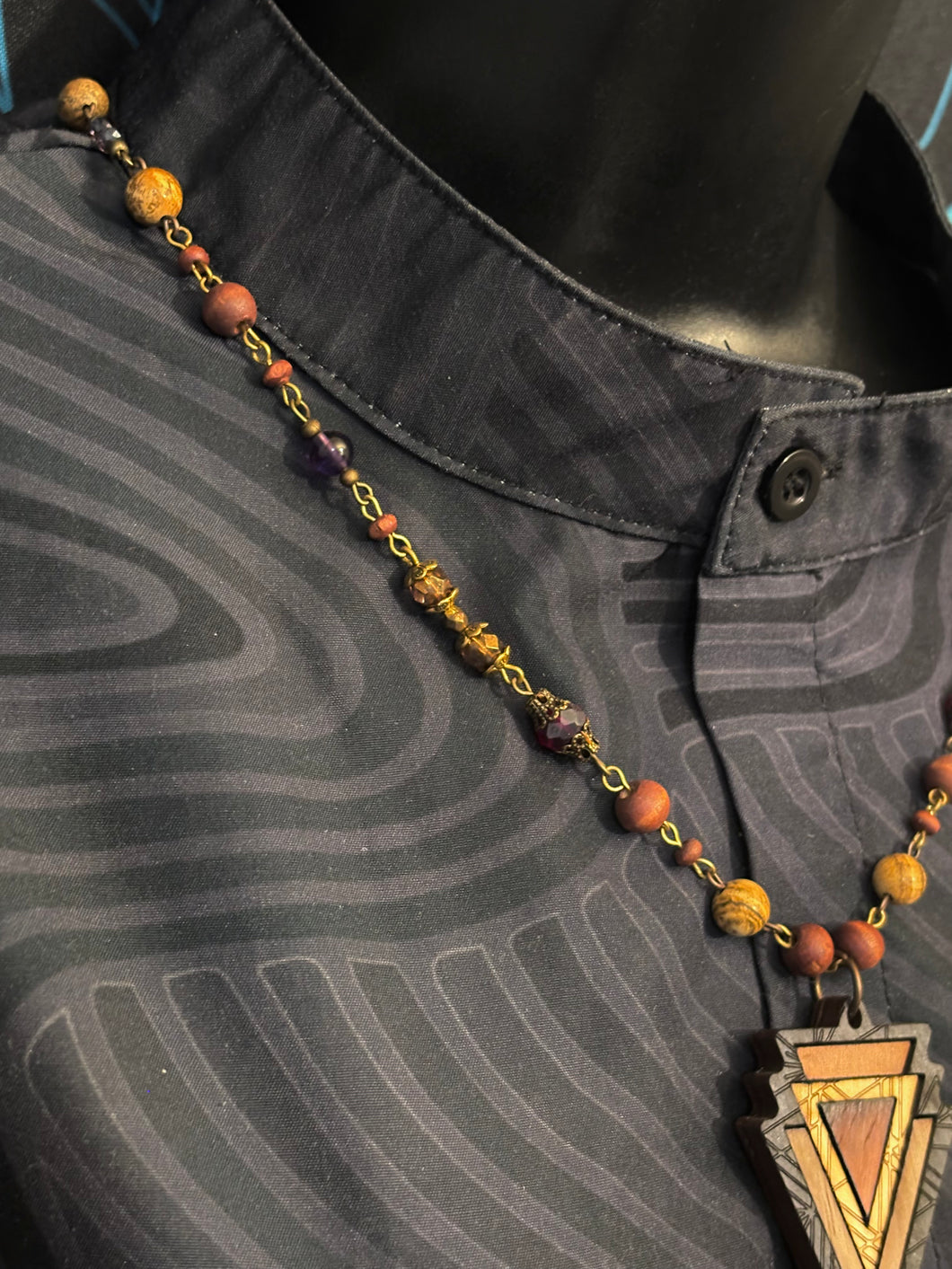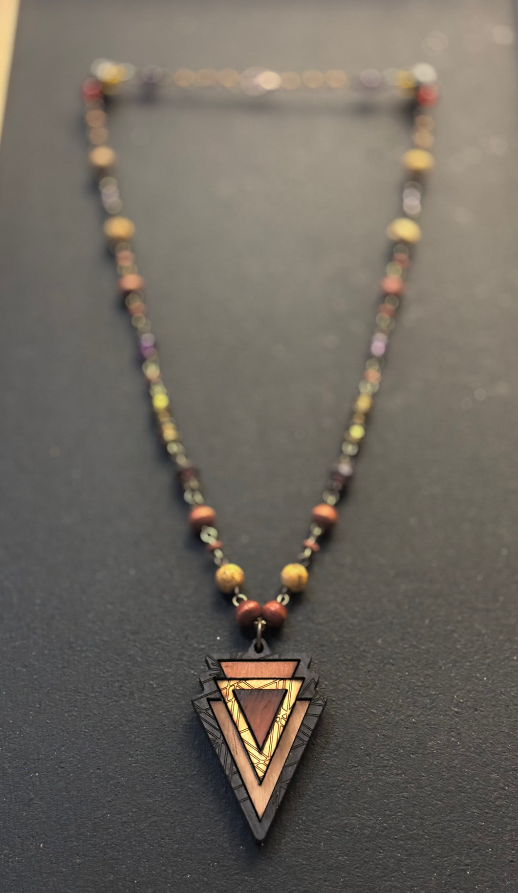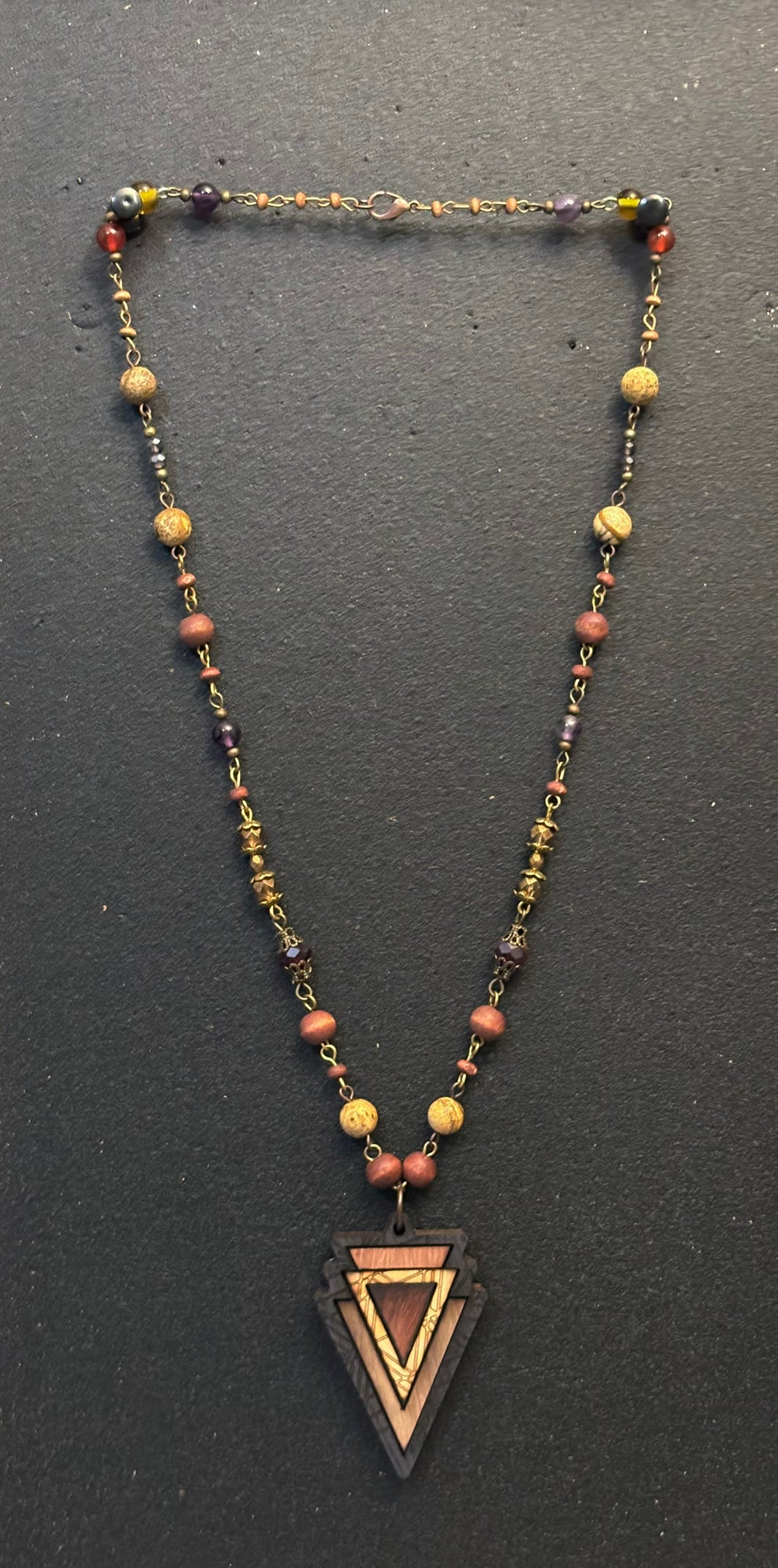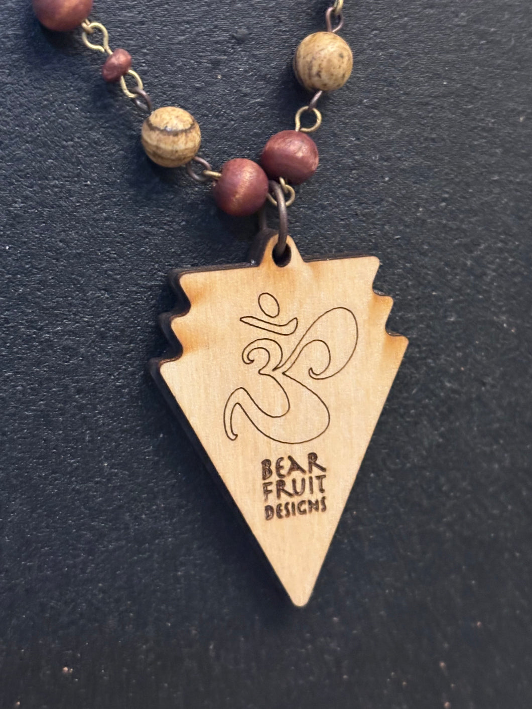 6-Wood Arrowhead w/ Jasper, Vintage and Wood Beads