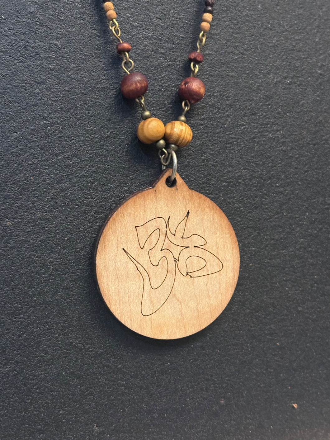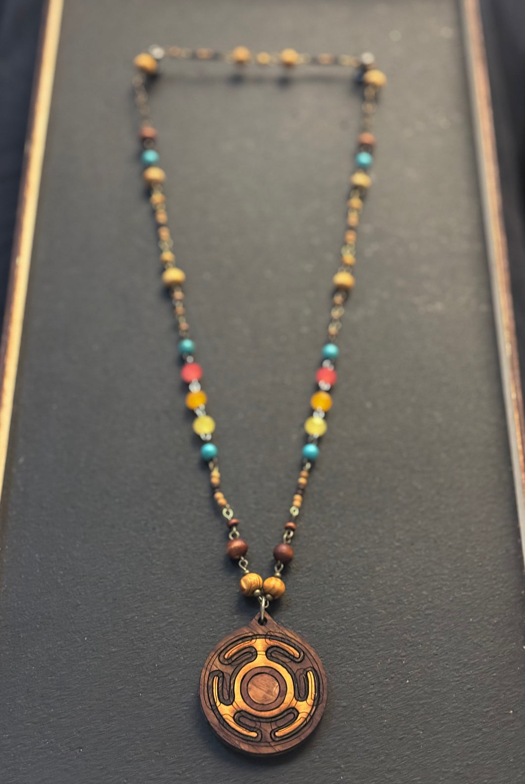 6-Wood Maze Pendant with Glass and Wood Beads
