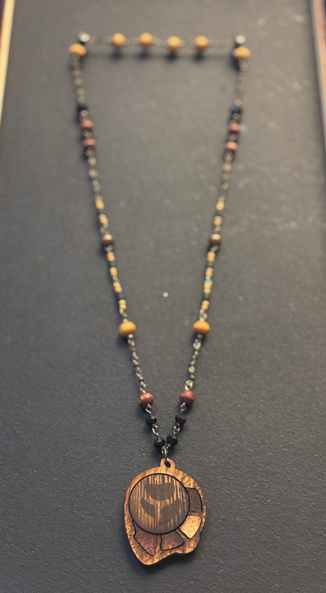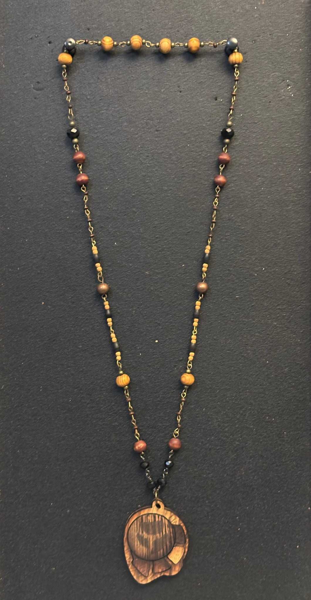 7-Wood Palette Pendant with Brass, Vintage and Wood Beads